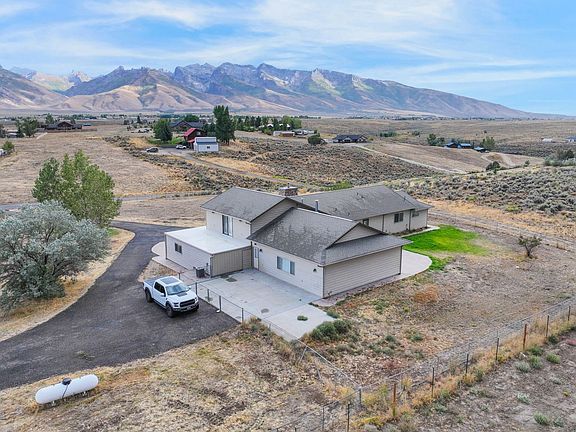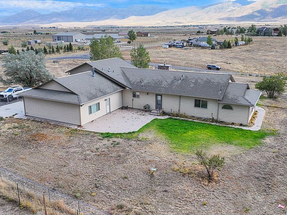 Spacious 2-Story Home with Mountain Views and Extra Living Spaces! This 3,784 sq ft two-story home sits on 1.84 acres of fully fenced land, offering beautiful views of the Ruby Mountains. It features two separate living areas-one with a pellet stove and the other with a wood stove. The main living area has high ceilings made of pine, giving it a warm, cozy feel. The main bedroom on the first floor has a large walk-in closet and a sunroom with a jacuzzi tub with two heaters to keep the water warm. The house has 3 bedrooms(Could be 4), 3 full bathrooms, and an extra half bath. Upstairs, is an open room with a wet bar area that has its own sink and mini fridge, along with a full bathroom and a balcony, making it a great space for entertaining guests or a second main bedroom. With five entrances into the home, getting in and out is easy. The two garages (702 sq ft and 510 sq ft) give plenty of room for cars and storage, and there's a big shed behind the garage for extra space. The house also has two water heaters, water softener, central air, a central vacuum system, pull through driveway, 2 220V outlets, and concrete patios out each side perfect for enjoying the outdoors.