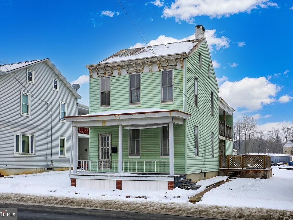Great opportunity to build sweat equity! This home is waiting for your finishing touches. Enjoy quiet evenings sitting on the covered front porch or side deck. Inside, the first floor boasts a large living room, formal dining room and spacious kitchen. There are 2 sets of steps leading to the second floor which offers 3 nice sized bedrooms and the full bathroom. The attic could be finished for an additional bedroom or used for storage. The huge backyard features a storage shed, and off street parking. Newer furnace.