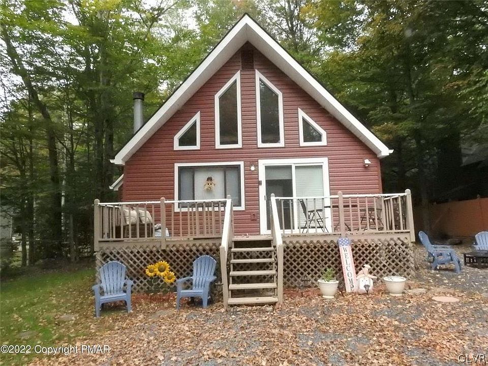 *Poconos Chalet For Sale!* Tucked against lightly wooded State Game lands and just a short walk from the Big Choctaw heated swimming pool, this adorable chalet is looking for a new owner! It offers 2 bedrooms, large loft with balcony, updated bath with tub, and stone-faced fireplace. All furniture included. New sliding glass doors in 2020. On cool evenings you can overlook your private backyard from the loft balcony. A really unique feature it offers is a tree house in the backyard with real glass windows. Before the new siding, the house and treehouse looked identical. With a little bit of love, it can be a fun kid's playhouse or amazing She Shed! It is happily located in the back section of amenity-filled Arrowhead Lakes. Make an appt...You can be enjoying the Poconos before you know it