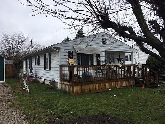 Great investment opportunity for the new owner! Much bigger then it looks from the outside! Four bedrooms, each contains a closet. Hardwood floors throughout most of the home. Lots of kitchen cabinets. Electric stove & Stainless Steel refrigerator stay! Deck on the front & back of the home. Detached garage & additional storage building. Lot is lengthy in back which makes for a nice big yard! With a little tlc the new owner could have a nice amount of equity. Priced to sell, and being sold as-is in all respects.
