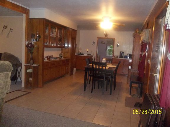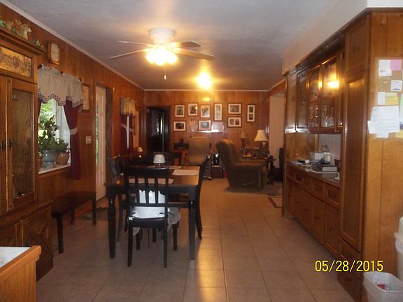 1970 mobile home with a 12x42 addition and12x24 addition consisting four bedrooms, , laundry room, kitchen, living room and 2 bathrooms. This sits on 5 acres of land with a beautiful view of a meadow and woods. Garage which is 24x36 which is insulated in ceiling and walls with oil furnace and automatic door opener. This home is in a quiet and peaceful setting off by itself.