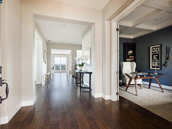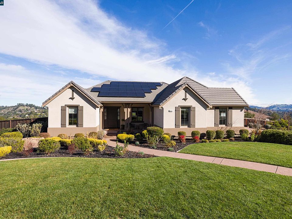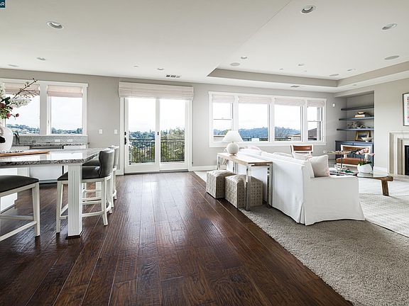 Situated within the coveted Orinda Oaks Development, sits an enclave of 12 single-family homes spread across 23 acres of pristine landscape. The location provides residents with a perfect blend of tranquility and convenience with easy access to downtown Orinda, Bart and Hwy 24. Step through the front door into a world of elegance and comfort. The spacious great room bathed in natural light offers gorgeous views of the surrounding hills and Mt. Diablo and built-ins on either side of the fireplace. The adjacent kitchen, offering high-end appliances, custom white cabinetry, granite countertops, and a large center island, is as functional as it is aesthetically pleasing. Off the kitchen is a deck with BBQ, perfect for entertaining and enjoying the views. The office offers a boxed beam ceiling and built-in cabinetry with desk. A formal dining rm boasts gorgeous millwork and 10' ceiling. Master suite is bathed in natural light with a spa inspired bath and walk-in closet. Downstairs one will enjoy a bonus room and 3 additional bedrooms, one oversized w/an ensuite bathroom and a second laundry room. The magnificent backyard w/expansive lawn, large fire pit and kids play structure is an oasis for any owner; other features include Solar, Tesla battery pack up, EV charger, and alarm system.