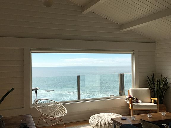 This is an OCEANFRONT log cabin in Bolinas, above Agate Beach, with an expanse of bluff and located on a secluded dirt road. There's a basement for surfboards and such, which also houses the washer/dryer. We will be showing it for the first time on the 7th. It has been remodeled with maple floors, stainless appliances, and painted in a white, lacquer like paint. It's the ideal, cute, white beach house. There are two bedrooms and one bath. Tenant pays their own utilities. We recently installed 300mb fiber optic internet.