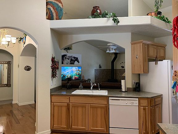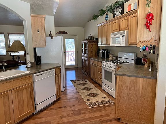 Beautiful mountain home in Little Creek Estates. Quiet area on half acre lot amongst natural boulders. Abundant wild horses, elk, deer, turkey and other wildlife! Wood floors in living areas and carpet in bedrooms. Living area, kitchen and dining area open floor plan. Dining area lined with windows to allow natural light. Wood blinds throughout most of house. Large master bedroom with bathroom on one side of house and two bedrooms and bathroom on opposite side. Loft area with closet and beds – in addition to the three bedrooms. Front and back fully covered decks. Large fenced back yard. Metal roof and two car garage. Plenty of parking with half circle drive. New Jotul wood stove. Outside of house stained in 2019. New Kinetico water softener and RO system added in 2020. Plenty of storage under house. Fully furnished including washer and dryer. New king and queen mattresses. New grill on back deck.