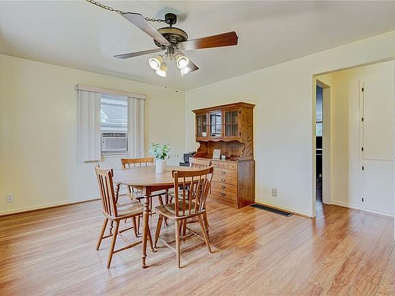 Welcome to this move-in ready, adorable Cape Cod on a double lot! Inside you will find a nicely maintained & clean home ~ Large dining room (or could be a 2nd living rm) w/ laminate flooring, ceiling fan & large picture window ~ Light & bright kitchen w/ ceramic tile backsplash, breakfast bar, and included appliances ~ Living room has nice windows to the backyard, a storage closet, door to the backyard & concrete patio ~ 4 season room/enclosed porch offers bonus space! Bathroom has recent updates including the popular LVT flooring ~ 1st floor bedroom w/ original hardwood floors & large closet ~ 2nd floor bdrm has w/w carpet & space for any size bed! Clean, dry basement w/ glass block windows & workbench area ~ Attached 1 car garage, extra driveway parking space, fully fenced yard & shed! Video tour link available in attachments ~ Delayed Showings 7/5/21, delayed negotiations until 7/8/21 @ 8pm.