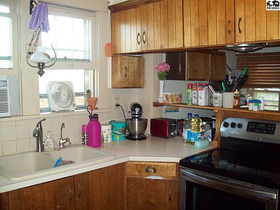 Cute 3 bedroom 2 bath bungalow within walking distance of McPherson College. Large privacy fenced yard with a 2 car garage in the back that is wired with 220 and could be used as a shop.