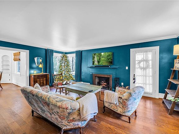 Charming, spacious yet inviting, this Walhalla Tudor style home has been lovingly updated and preserved offering the best of modern conveniences and historic charm. Located on a spacious double lot containing over an acre of land, and just two blocks from Main Street Walhalla, this custom built home was originally built for local jeweler and the attention to detail is apparent throughout. Head up the back steps and into the newly remodeled kitchen, featuring quartz countertops, marble backsplash, new stainless steel appliances, tons of cabinetry, eat up bar, open to a large den area. Off of the kitchen a large formal dining room overlooks the back property and opens seamlessly into a formal living room, with a working wood burning fireplace, and access onto a picturesque side screened in porch. The master suite is located on the main level and contains his and her closets and is located adjacent to the main level full bath, and newly installed hidden laundry area. The main level also contains an office/library space that could be used as a fifth bedroom, and contains a working wood burning fireplace, hidden built in desk and beautiful detailing. Heading upstairs, you'll find three large bedrooms, each with their own unique features and built ins, as well as an updated full bath. The home also contains an unfinished basement, plumbed out for a half bath and containing great room for storage. The back yard is fenced and features a courtyard with outdoor BBQ area and patio. Off of the fenced backyard, a trail leads down to an RV storage area, with an old road bed leading out to Catherine Street that could be reopened as a second entrance. Inviting, spacious but cozy, convenient but private, this home combines all the great elements that Walhalla has to offer in a beautiful property that is truly a must see.