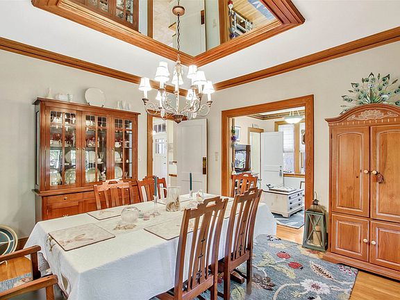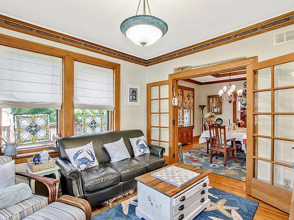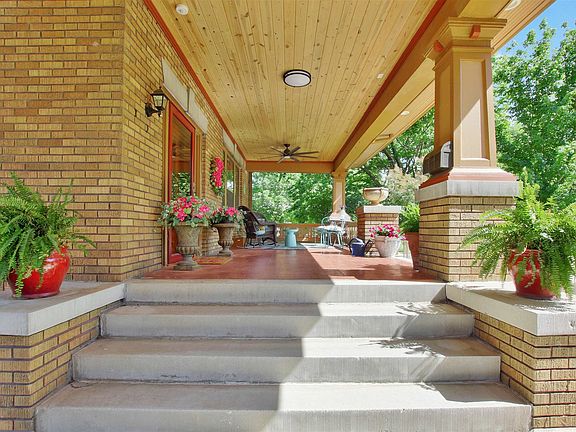 Exquisite historic College Hill two story, situated on a beautiful corner lot complete with Portico drive through to the matching all brick Carriage House and 2 car garage. Walking up to the porch you will notice the new wooden ceiling with recessed lighting that embraces historic integrity with modern updates. Step inside vast original hardwood floors leading into the expansive living room with large windows to bring in the natural light. Notice the crown molding and additional art hanging molding for designer artwork to be displayed. Get cozy with the natural gas fireplace. The formal dining room has plenty of space for large tables and has the original glass windows with stained glass inlay. Continue to the back living room or potential main floor office. You'll cook like a chef on this Commercial Grade Viking Gas Range and Stove complete with double ovens and 6 burner gas range. Granite countertops, mosaic tile backsplash, solid stone sink, two additional buffets with over hanging cabinets this kitchen has it all! There is a half bath around the corner under the stairs on the main floor. Continue up the grand staircase to 3 LARGE bedrooms. You will love spending peaceful evenings out in the spacious Primary suite with hardwood floors, large walk-in closet and 5ft onyx standing shower. 2 Additional Large bedrooms each with 1915 historic wash sinks and step-in closets. Additional large bathroom with jetted tub shower combo and double vanity quartz countertop sink. Don't miss the laundry shoot in the hall linen closet! Enjoy the fully finished basement living room and full bathroom. Basement laundry has a wash sink and extra space for a full sized refrigerator. Backyard Carriage House, great for guest quarters, has a full bathroom, 1 bedroom and 1 living room. Complete with new HVAC system and Hot water tank in 2 car garage underneath. Enjoy warm evenings in the backyard on the floating covered deck. This backyard always has beautiful blooms all Spring and Summer long. Perfect location for walking to local eats and school. Make this historical home part of your family history. (New Roof,Gutters,Downspouts,and Facia work being currently being completed.