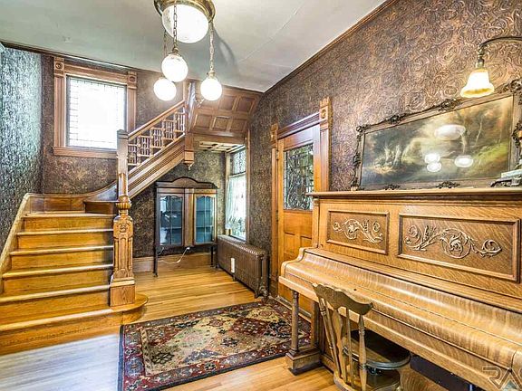 Impeccably cared for historic, two-story home in the heart of the city! Truly shows pride of ownership & attention to detail in maintaining the original character of the home. 4 bedrooms (all on same floor). Hardwood floors are beautiful. Formal dining room w/ gorgeous pocket doors & original lincrusta walton wall coverings (also in foyer). Free-standing front staircase & separate back stairs. Huge living room w/ wood fireplace. Large master bedroom w/ 2 closets, 1/2 bath & private deck. Huge 3rd story is mostly finished w/ a great loft area & another 13 x 12 room. Kitchen features custom antique cab, granite counter, heated tile floors, eat-in area, island and appliances are included. Main floor laundry and 1/2 bath. Double attached garage, extra parking pad, storage shed and a relaxing front covered porch. Too many updates to list.