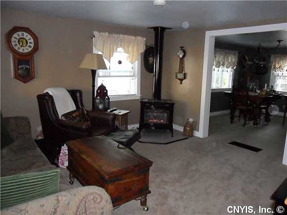 great home with 2-3 bedrooms , 1 full bath. large kitchen and living room dining room combined. Nice gas fireplace, new carpet and totall renovated. Large 3 season porch overlooking large back yard and swimming pool. 3 Storage buildings provide extra storage space