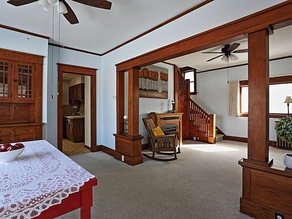 4-Bedroom home in the Village of Valders offers 1,564 square feet of finished living space, main floor bedroom, and beautiful craftsman-style woodwork on a 0.22 acre lot with backyard space to play, relax and/or garden. Detached garage provides parking for 2 vehicles, workshop, and storage space. Special home features include: charming enclosed front porch, 1st floor office/den, comfortable radiant heat, beautiful natural lighting, proximity to Valders Memorial Park and Schools. Fully applianced home comes with range, refrigerator, dishwasher, microwave, washer, dryer, and water softener. Siding on house is aluminum; garage siding is wood. Chipped/peeling paint on garage makes this home ineligible for FHA or VA financing (but it's a great garage).
