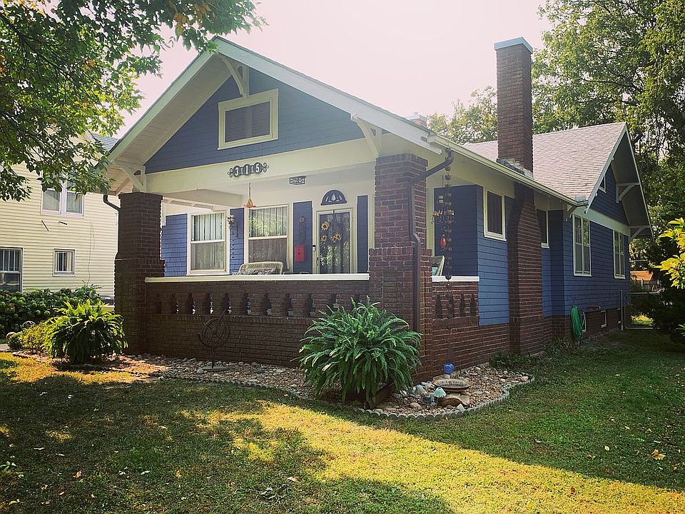 1 1/2 story Craftsman-style bungalow (3 Bedrooms on main, 1 Bedroom upstairs). Exposed eaves and rafter tails, cedar shake siding (exterior painted-Summer 2019), w/brick detailing at foundation and large covered porch. Complete Kitchen remodel-Fall 2019. Eat-in area. ALL NEW: porcelain tile flooring, porcelain subway tile back splash, granite counter tops, soft-close drawers and cabinets stacked to ceiling, FIRECLAY apron front farmhouse sink, KRAUS faucet, reverse osmosis water system, stainless BOSCH dishwasher and GE above-range microwave, under cabinet and overhead lighting. Newer stainless french door refrigerator and smooth top range w/double ovens. Garbage disposal. ORIGINAL: Hardwood floors, woodwork, large mantel atop cabinetry at stone fireplace in Living Room, pillars and cabinetry at formal Dining Room, built-in linen cabinet and drawers in Hall. Main floor Laundry. Interior access and exterior egress to Basement. Basement has work bench/storage and additional W/D hookups. HVAC. New water softener installed Dec ‘19. Detached 2-car Garage w/alley access. Off street parking at front and rear.BACKYARD: 6’ privacy fence at alley, large fully enclosed area has new 4’ wood picket fence (summer 2020), and outdoor living space at side yard.