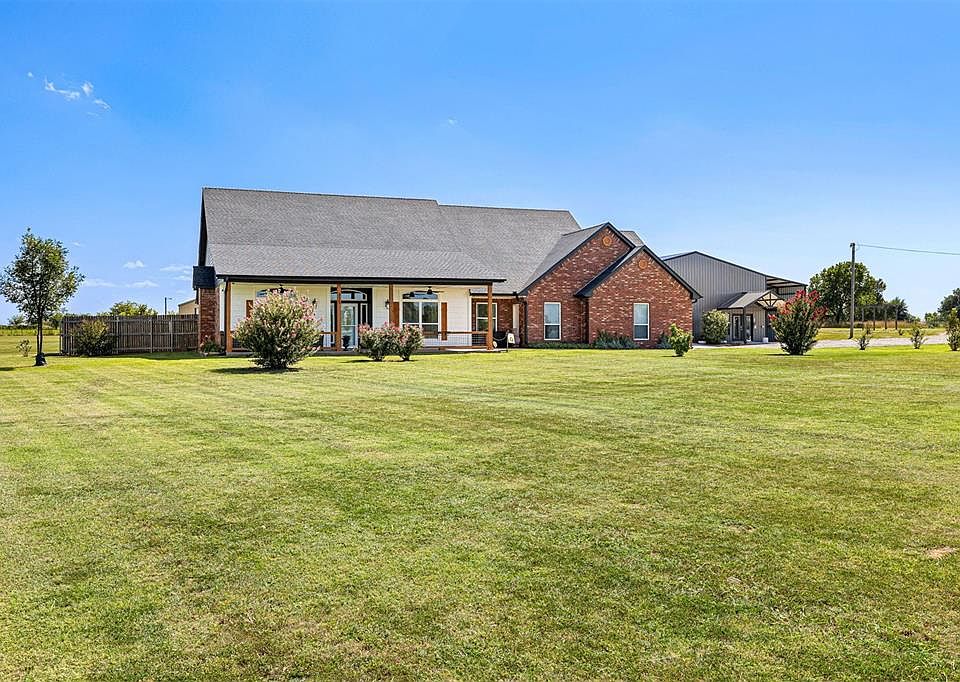 Say hello to 315 N Mustang Road in Tuttle! This one of a kind home sits on 6 acres but is just moments away from local highways and turnpike access, shopping, restaurants and other amenities. This beautiful home is immaculately cared for and offers new exterior fascia, soffits and roof in 2023! The interior features modern paint colors and an open concept living, dining and kitchen space. The living room features beautiful carpentry, a large window offering lots of natural light and opens to the dining and kitchen space. The kitchen features custom cabinets, a tile backsplash plus an island with additional seating space! In addition, the kitchen and dining space offer large windows overlooking the backyard. Just off the dining area is access to the covered patio with plenty of seating and space for your favorite outdoor activities. All three bedrooms are nicely sized and offer ample closet space and large windows! The primary bedroom offers access to the backyard patio, an accented ceiling and features an en-suite bathroom with a whirlpool tub, walk in shower and large closet! Both guest bedrooms are nicely sized, one is currently being used as an office but the seller would be willing to remove the built ins for more of functional bedroom. Just off the kitchen and laundry room is a large mudroom that offers access to the garage. Outside features a 40x40 shop with a lean to, loft for additional storage & an overhead garage door that features spray foam insulation, a half bathroom plus two additional rooms that feature mini splits! Seller believes home square footage is about 2,000 with mudroom addition. There is so much to love about this one! Don't wait! Schedule your private tour today!