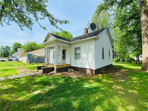 This 2 bedroom 1 bath home has updated heating and a/c, new vinyl siding and front porch flooring. Inside, there is an open concept floorpan with original wood floors and a partial unfinished basement. Outside, has a nice back yard and carport. This home is centrally located close to downtown.
