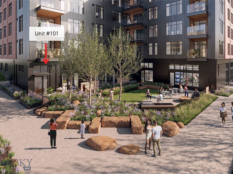 The only unit in the brand new Henry building in downtown Bozeman with direct courtyard access, this two bedroom, two bathroom condo features incredibly high ceilings and multiple patios that open to a landscaped, private outdoor entertaining space. As a ground floor unit, enjoy multiple entrances, either via the courtyard or through the main floor of the building. Equipped with Bosch appliances, quartz countertops, wool carpeting, oak hardwood flooring and high-end fixtures, this light-filled gem has everything you’re looking for in a downtown condominium. Building amenities include a ground floor fitness center and climate controlled, secure underground parking. The Henry building has amenities that make it more than just a residence: a ground floor fitness center, tons of storage, a library-like main lobby and climate-controlled, secure underground parking. Just three blocks from Main Street, twenty-five minutes to Bridger Bowl and forty-five minutes to Big Sky Resort, you'll have easy access to the vibrant downtown scene, outdoor recreational activities, and Montana's stunning natural landscapes.