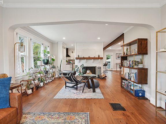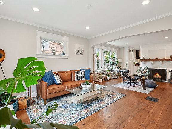*OFFER RECEIVED. OFFER DEADLINE 5/27 @ 12pm. Have offer expire 12pm 5/28* Charming and beautifully remodeled bungalow on a peaceful street in Montavilla — where vintage character meets modern upgrades. The open floor plan features a formal entry, spacious living and dining rooms, and a classic brick fireplace perfect for cozy nights.The kitchen is a showstopper: quartz counters, black stainless appliances, full chevron backsplash, and a large breakfast bar that opens to a sunny nook (ideal for morning coffee or late-night snacks). Also on the main level: a stylish bedroom and a full, beautifully updated bathroom.Historic charm shines through with engineered wood floors, newer windows, an exposed steel beam, designer lighting, and central AC for year-round comfort. Upstairs you’ll find two more bedrooms and another updated bathroom.The finished basement is packed with bonus space—including a family room, office, laundry room, and a wet bar for entertaining or end-of-day wind-downs. Door off the kitchen leads to small covered finished wooden deck, ideal for year-round grilling, overlooking the west facing backyard, complete with a lush lawn, shade trees, and raspberry bushes ready for summer picking.The garage provides ample lighting, built-in storage, and a large workbench for hobbies and projects and the long driveway offers easy parking. Enjoy time on the spacious front porch, overlooking the fruits of your labor in the front and side raised garden beds. Located on a friendly block with monthly neighborhood hangouts and close to Montavilla Park + pool, The Yard food carts, Mt. Tabor, and all the hot spots on Stark.