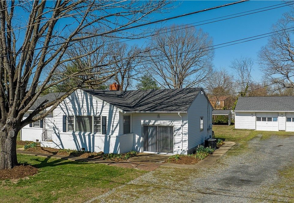 Picture Perfect, Stately Ranch Home situated on a double lot in quiet mature neighborhood. This terrific home features spacious Living Room with hardwood flooring and wood burning brick fireplace with huge picture window and flows nicely into the cozy Kitchen with adorable retro stove and tiled backsplash. Recreation room with built-ins is perfect for Den or office. 3 Bedrooms all with exposed hardwood or hardwood under the carpet. Primary Bedroom offers small 1/2 bath. Detached Garage is 31x27 with 2 bay doors and pedestrian door and floored storage above. Plentiful parking. Brand New HVAC installed 2/2023. Spacious deck overlooking peaceful back yard. Close to interstates, dining and shopping. You do not want to miss this great opportunity.