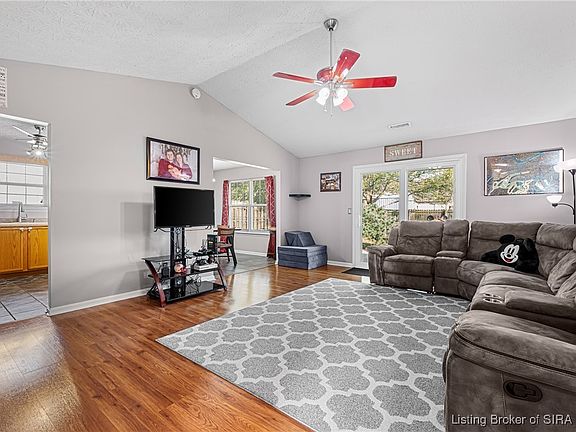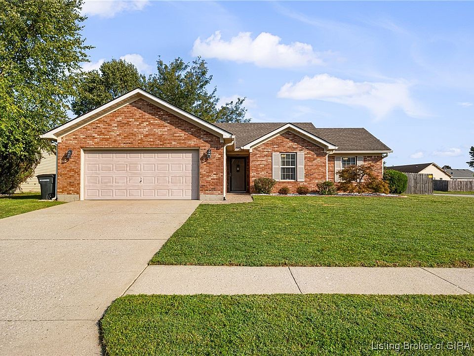 Welcome to 315 Nicole Dr, a beautifully maintained 3-bedroom, 2-bath home in the highly sought-after Fields of Lancanssange neighborhood in Jeffersonville, Indiana. This single-family home offers 1,286 sqft of thoughtfully designed living space. The spacious primary bedroom includes an ensuite bath and a generous walk-in closet. The inviting eat-in kitchen features modern stainless steel appliances as well as a breakfast bar. The living room boasts a vaulted ceiling, enhancing the home's open and airy feel, and a brand-new sliding door opens to a large, private backyard with a full privacy fence, ideal for outdoor gatherings and activities. Situated on a desirable corner lot, this home also offers a 2-car attached garage. Conveniently located near the East End bridge, it provides easy access to shopping, parks, and other local amenities. Do not miss the opportunity to make this charming property your new home!