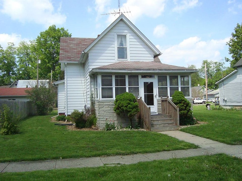 Solid 1 1/2 story home featuring 1,400 finished sq. ft. Needs cosmetic updates thru out. Living room, dining room, kitchen, laundry and full bath on main. All appliances remain with sale. One bedroom on main, two bedrooms, office upper. High efficiency furnace, upgraded electric. Home in trust being sold as seen. Home sits on two lots with two car detached garage.