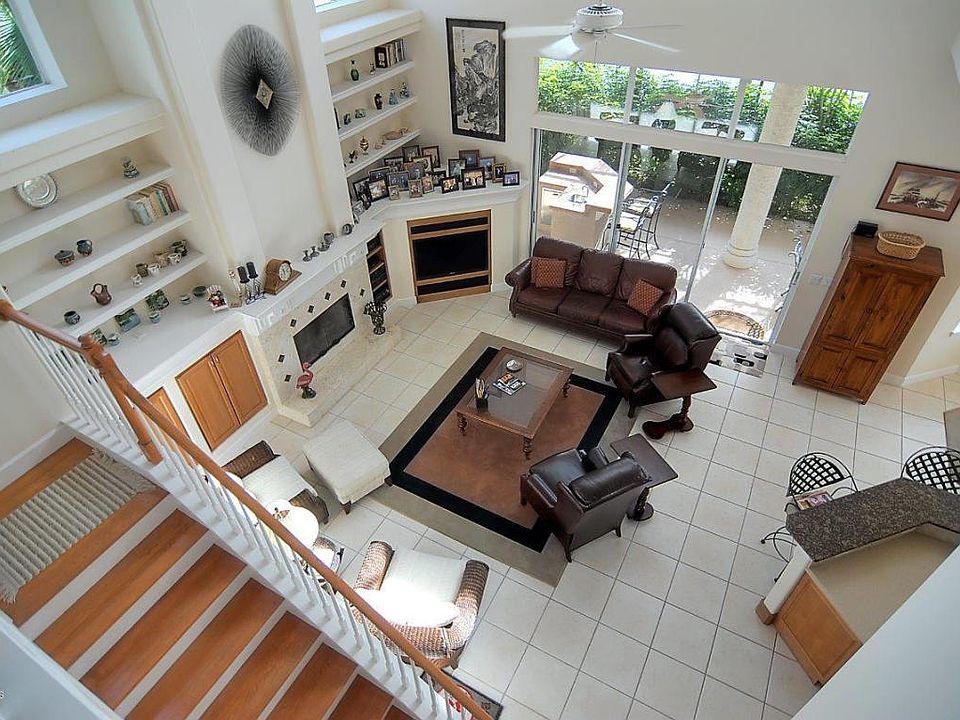 Overlooking the lake, this 4/5 bd, 4 ba, 3 car garage, 2 story home features an open floor plan, loads of natural light & enjoys the benefits of a Southern exposure. Prestigious, gated Cloisters community. Minutes to Medical Ctr, Melb. Airport & Atlantic beaches. Family rm offers sweeping, dramatic 22' high ceilings, fireplace, entertainment center & opens to breakfast area & gourmet island kitchen-with direct access to pool, summer kitchen & lake. Ideal for entertaining! In wall pest control. Elaborate master suite w/tray ceilings & pecan wood floors. All wood finishes in home are pecan-including floors & kitchen cabinets. As you enter, you are immediately awed by the exciting interior w/expansive views through the living room to the rear pool/spa & lake! Enjoy the best of Florida living!