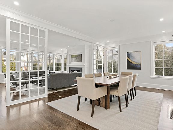 Better than new sophisticated colonial with custom features on all four levels. A grand entrance welcomes you with floating staircases and double ceilings surrounded by a sprawling open floor plan for great flow and ease of living and entertaining. Rooms are highlighted with custom millwork, handcrafted cabinetry, 9ft ceilings, hardwood floors, professional grade appliances and exquisite finishes. The 2nd floor boasts a master suite wing with vaulted ceiling, ensuite bath, custom closet and attached bonus/exercise room. Three additional bedrooms with ensuite baths complete the second floor. The finished 3rd floor has two bonus rooms and half bath. Finally, the lower level offers a state of the art media room, guest room and full bath. Excellent location walkable to train & shops. See Highlight Sheet.