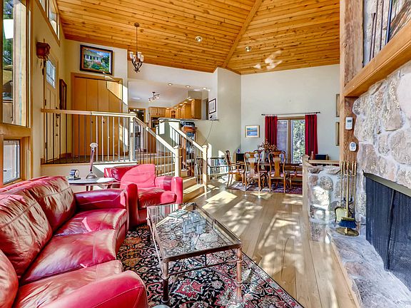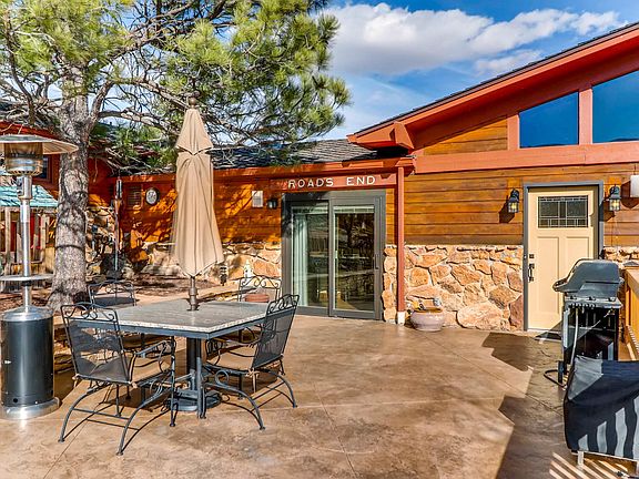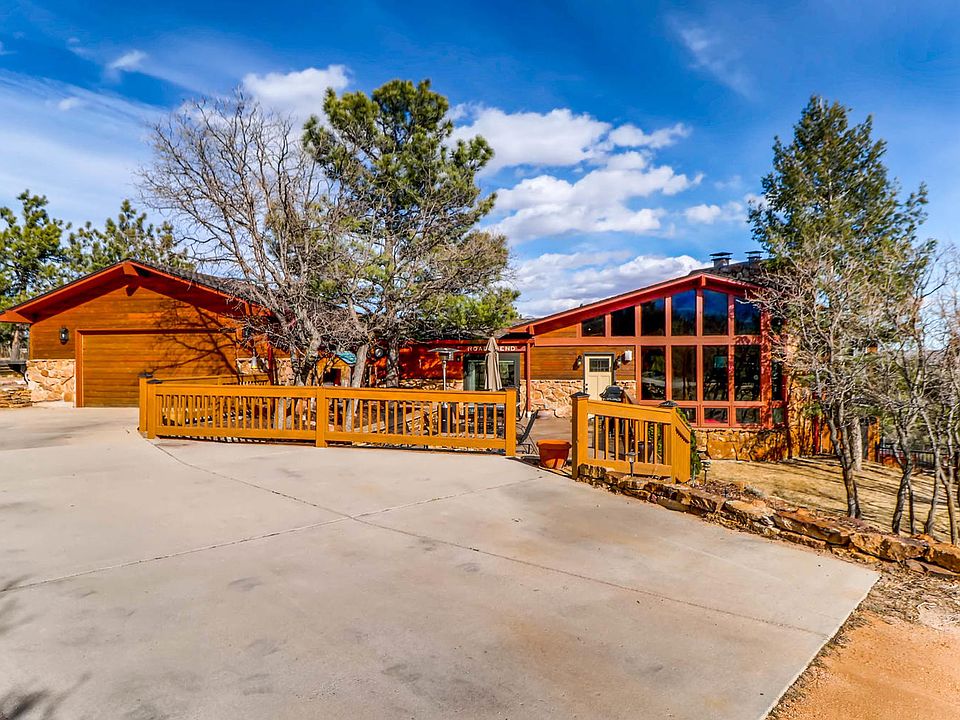 Don't miss this truly unique private mountain retreat on 5.05 acres in little known Woodmen Valley. Located in award-winning school district 20, this is country living at its best in town! This house has the feel of an upscale mountain lodge, and was designed by an architect for his own family. Zoned for horses and overlooking the Air Force Academy, the property has breath-stopping views of Pikes Peak and city lights from the 3 new composite decks and a large stamped concrete patio with natural gas fireplace. An open floor plan, scenic unobstructed views and oversized windows in every room make this home feel much larger. The fully updated and meticulously maintained property shows quality and unique finishes throughout including: hickory hardwood and tile floors, granite countertops in the kitchen and baths, stainless appliances, skylights, and Pella windows. The great room showcases a 16-foot ceiling with floor-to-ceiling windows and floor-to-ceiling natural moss-rock wood fireplace. It features 3 bedrooms and 4 bathrooms, plus two private office spaces one of which could be a bedroom and two additional family rooms. Relax in the secluded hot tub with views of the city lights. Additional features include an oversized 2-car garage with built-in storage, main-level laundry space, and much more. Easy access to hiking, biking, shopping, dining, area parks, and just 10 minutes from I-25 for an easy commute anywhere citywide or just 45 minutes to Denver. Pre-inspected and move-in ready. Don't miss this one-of-a-kind home.