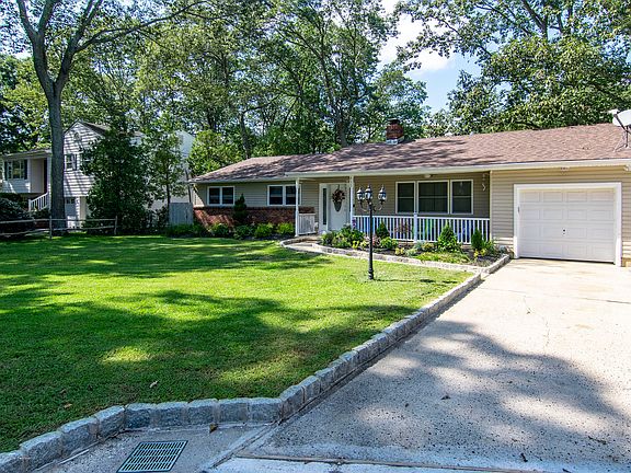 Good sized ranch with garage in the cul-de sac. Nice front porch and big front yard. 4 bedrooms with wood floors, 2 full baths updated and wired for wifi, lights and music! Newer HVAC system, central air roof and water heater, Full basement . Big fenced in yard. Underground sprinklers. Family room has woodburning fire place. Eat in kitchen with newer appliances. Close to beaches and all major highways,