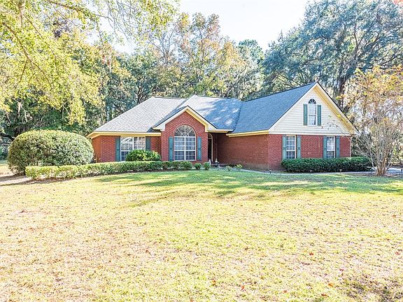 Beautiful full brick exterior 3 bedroom, 2 bath on a .74 acre homesite nestled in nature. This fantastic home is situated in Richmond Hill neighborhood and offers many features: living room with vaulted ceiling and fireplace, separate formal dining room, light and bright kitchen with breakfast area, breakfast bar and pantry, spacious primary bedroom suite with tray ceiling, walk-in closet and master bathroom including double sink vanity and shower, separate laundry room, closed in garage, wood flooring. Privacy fenced yard, patio, 1 storage building and big back yard. Easy access to Interstate 95.