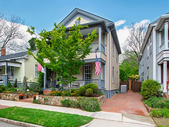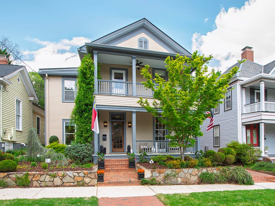 Live the legacy of Raleigh's storied past at the Miriam Carson Williams House, c.1883, in the heart of Historic Oakwood. Built for North Carolina's first female bank president, this once Victorian side-hall-plan home is rich in character and heritage. In or about 1920 the original structure was enhanced with Charleston-style stacked covered front porches—perfect for enjoying Raleigh's southern charm. Inside the home you'll find incredible heart-pine flooring, high ceilings, impressive millwork, eye-catching lighting, an exquisitely-updated kitchen with Thermador appliances including a full-size wine refrigerator, and two beautifully-updated baths with marble countertops and flooring, one with a classic clawfoot tub. The home also features a dedicated office, mirror-image living rooms, and four fireplaces that add warmth and charm throughout. Through the French doors at the back of the house, step into a living work of art where nature's beauty and thoughtful design come together in perfect harmony. And with some of Raleigh's best restaurants, coffee shops, and bakeries just a short stroll away, this is historic living at its finest—perfectly nestled in one of the city's most treasured neighborhoods.