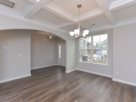 The Palmer, four bedrooms two-and-one-half baths, two car garage. Walk in and see the stunning dining room that features a coffered ceiling and butlers pantry. Open kitchen to the breakfast area and family room. Beautiful kitchen that includes an island that fits bar stools for seating, walk-in pantry, gas stove, quartz countertops and a tile backsplash. Master bedroom features a boxed raised ceiling with a ceiling fan, huge walk-in his and her closets and a private luxury bathroom with a toilet closet. Enjoy the covered porch on the back with a patio for the grill. Irrigation in the front yard, tankless water heater, granite countertops in the baths, designer paint color throughout and luxury vinyl on most of the main floor.
