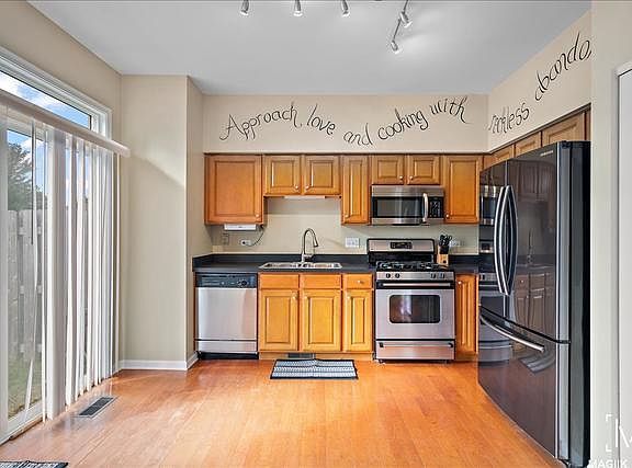 - Appliances: Oven/Range, Microwave, Dishwasher, Refrigerator, Disposal, Washer, Dryer