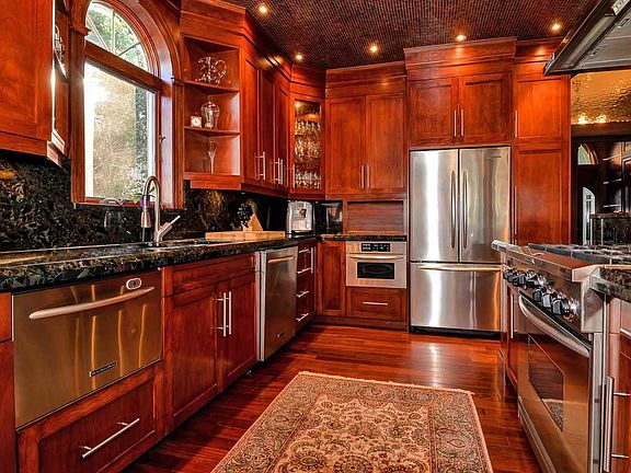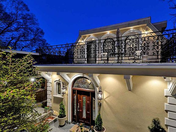 Luxurious and private approx. 3000+ sq ft multi-level home with direct NYC views, unique outdoor space and 2 car parking. Conveniently located moments from Hoboken & Jersey City, Lincoln Tunnel & multiple NYC transportation options. An entertainer's dream: sprawling dramatic living/dining room with arched windows framing the view, tray style ceiling with onyx back lit tiles, custom built shelving, powder room and surround sound. Open chef's kitchen with cherry cabinets, Italian marble counter-tops, stainless steel appliances with 6 burner stove. Office with custom cabinetry. Large master suite with NYC views with onyx master bathroom with Jacuzzi (again with NYC views to NYC), double sink and vanity, towel warmers, and a full sized laundry room. 2 additional bedrooms. Outdoor grotto for entertaining with fireplace, kitchen, bathroom and accent waterfall. Asian cherry/maple hardwood throughout. Other features include: Security cameras, central A/C and radiant heat throughout the entire home, wood burning fireplaces, and a gas fire place. Lower level has finished basement with built in bar, pool table and a bathroom, a perfect man-cave. A one-of-a-kind home!