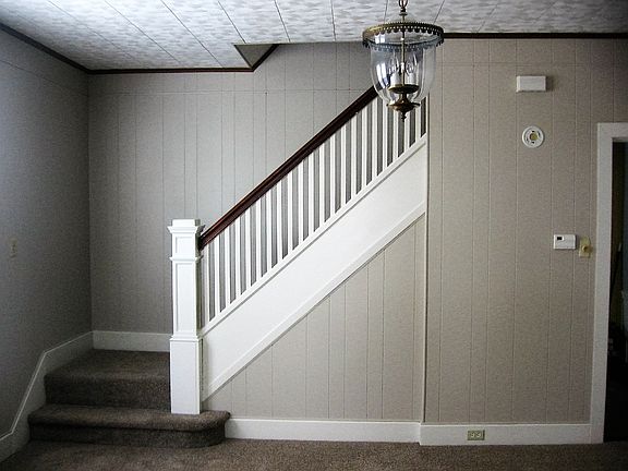 3 hall entered bedrooms, 2 full bathrooms, C/A, partial finished basement with recent painting. Close to hospital.