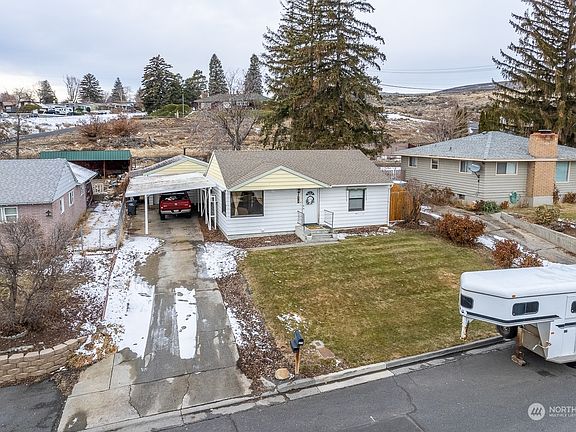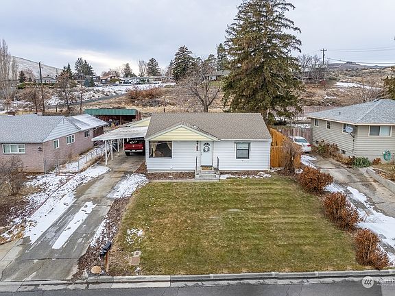 Come take a look at this cute home! It's in great shape with lots of updates. The living room has large windows with views that are fantastic! You can enjoy the sunrises over the basin and the city of Ephrata. The refinished dark hardwood floors and the arched doorways give the home a cozy feel and the newer bathroom & tiled tub surround is beautiful. All the kitchen appliances are included, as well as a microwave stand. The laundry closet is next to the kitchen with room for a full-sized stacking set. There is an oversized single garage in the back behind the carport and the backyard is fenced with a firepit, swing and upper patio. There's a covered storage area beside the garage too! You really need to make a plan now to see this one!