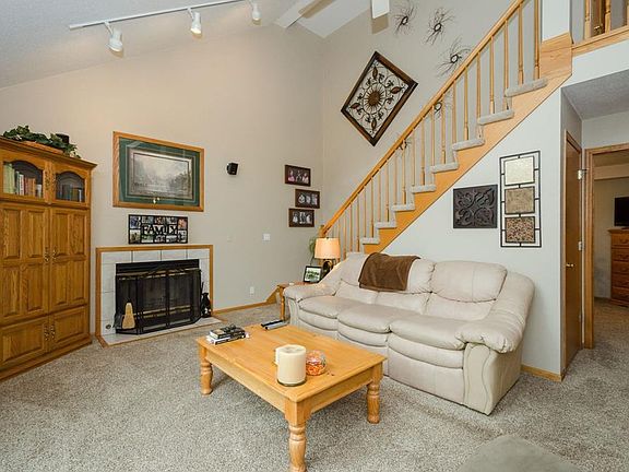 Sharp Flynn built home in a great neighborhood. Vaulted living room with a cozy fireplace and great natural light welcomes you in. The center kitchen creates an easy flow to the front or back of the home. Two dining areas give you the option of cozy dining out front or a larger gathering out back overlooking the deck and rear yard. The first floor bedroom and laundry allows you to call this home for many years. Upstairs are two nice bedrooms and a full bath for family or guests. The lower level offers a bright rec room with a slider to the patio and large rear yard. You have your choice of an office, bedroom or workout room with a half bath (shower is roughed in) off the rec room. There is also tons of storage in the large utility room. This is a well cared for home ready to make its new owners comfortable.