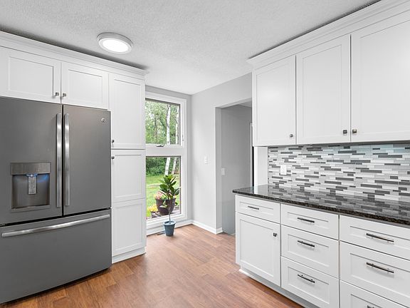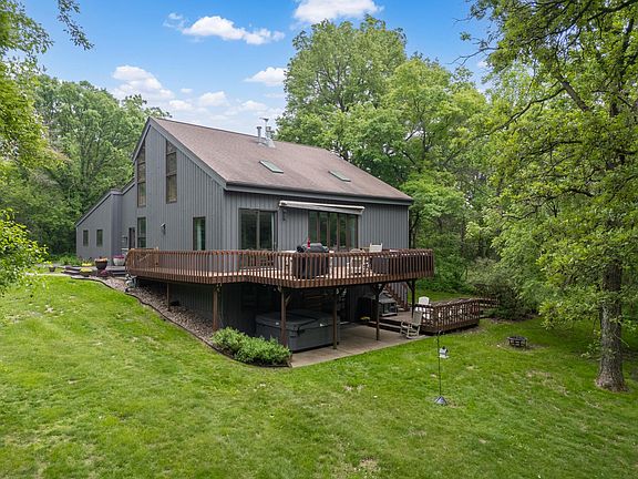 Completely renovated private retreat on wooded 2 acres. This home has been updated with granite counter tops, stainless steel appliances, ceramic tile in all bathrooms, luxury vinyl throughout kitchen and living room. Dramatic vaulted ceilings in living room with open staircase, skylights, and large windows that provide sunlight. Large multi-level deck overlooking the spacious back yard. Lower level features a newer primary bedroom, ¾ bathroom that has in-floor heat. Lower living room with gas fireplace and walk out to large patio. There is an option for potential open enrollment to Pine Island schools.