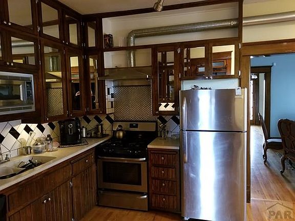 A large covered front porch welcomes you to this charming 2 story Victorian, ready to move into! 3 good sized bedrooms and a full bath upstairs. Original wood trim and floors throughout but an up to date kitchen. Formal dining room, with wooden French doors and pocket doors to close off the living room from the entry way and dining area. The basement is fully finished with tile, and has lots of storage space, and a bathroom as well! The back yard has an in ground, heated, pool with plenty of patio space for a nice BBQ or gathering of your choice! A new roof and gutters are currently being installed. There is also a guest house/office with one bedroom, living space and a full bath. The garage is located on the alley. Make your appointment today - this won't last long!