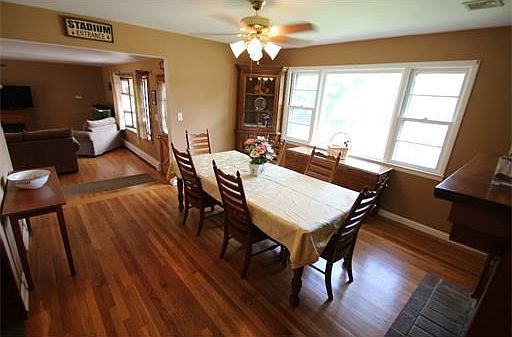 Expanded ranch boasts 3 BRs, 2 Full Baths. There is a large kitchen with slate floors and breakfast room with a wood burning stove. The formal dining room has a wood burning fireplace. There are hardwood floors throughout, finished basement 1 car attach garage, large fenced yard.