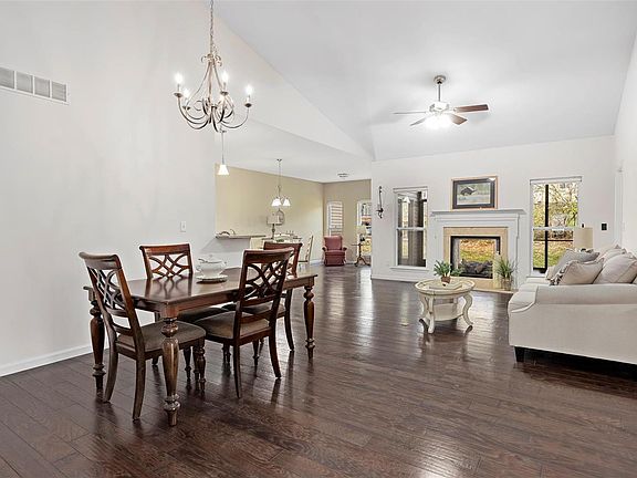 TIMELESS ELEGANCE! Enjoy refined living in this beautiful ranch villa, where sophistication meets comfort. Whether you want a private retreat or space to entertain, you will love the spacious open floor plan, soaring vaulted ceilings & modern engineered wood flrs throughout & above all...2-sided fireplace between the FR & cozy screened porch which will be a favorite & most-used space, offering protected outdoor serenity! Gourmet kitchen will exceed your expectations w/custom cab featuring some glass fronts, 5-burner gas range, blt-in micro, granite counters & breakfast bar, tile backsplash, walk-in pantry & newer SS fridge stays. Retire to spacious primary suite w/bright bay window, large w-in closet & en-suite w/dbl sinks. Your 1765 sf also includes formal DR space, hearth rm/sitting area, 2 additional oversized BRs & full BA . Iron stair rail leads you downstairs w/completed full BA & expansive space ready to finish w/egress window allowing for an additional 4th BR if you desire. Additional Rooms: Sun Room