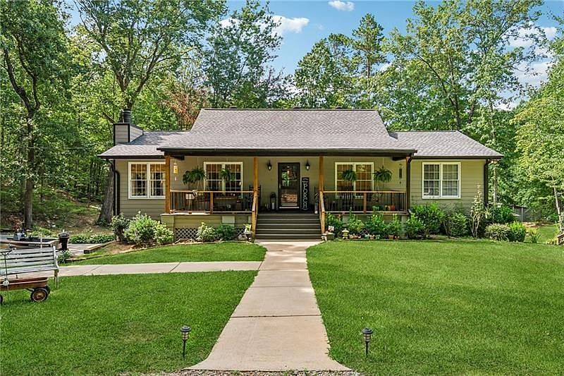 Don't miss out on this beautifully done raised ranch that has been so loved by one owner. It's time for this 6.43 acres to be home to a new family that will love it as much as the Seller's family has! The 3 bedroom, 2 bath home sits on a daylight unfinished basement so there is room to grow if you need additional bedrooms or flex space. The first thing you'll see upon entering is the large stately great room with floor to ceiling wooden bookshelves flanking a gorgeous stone fireplace. Find the floorplan in the images and you can see the separate dining room just off the great room so you can enjoy the fireplace while you have dinner. An eat in, country kitchen connects to the dinning room and also leads out to the expansive multi-tier deck that overlooks the absolute DREAM of a backyard complete with a pond, dock, stalled building, garden and an adorable outbuilding that can be a playhouse for the kids or space for your chickens. The Seller once had horses here so plenty of room for that if your horses need a home too. The 2 car garage is currently open to the basement so if you have boats, jet skis, etc you would have space to pull them in and still have room for your vehicle. Being just a short trek to Allatoona lake who wants to pay extra to store when you have this space already?? If you begin at the road you'll notice two graveled entrances to the property that connect via a wrap around drive. Pulling boats, campers, etc are a breeze with the in and out drive. Each of the driveways serves the one home but if a second homesite is in the plan you can utilize the second drive and road frontage to build another home , barn, etc. Currently the property is using public water but was once on a well so the possibility remains for the next owner to have a well. Can't beat the location with an approximate 10 miles west to I-75 and 10 miles east to I-575. Shopping close in both Canton and Cartersville with easy access to boat ramps and campgrounds on Allatoona Lake. The up and coming City of Emerson is a few exits away and you can be at a Braves game in close to 30 minutes. Come see this property where suburbia meets the country!