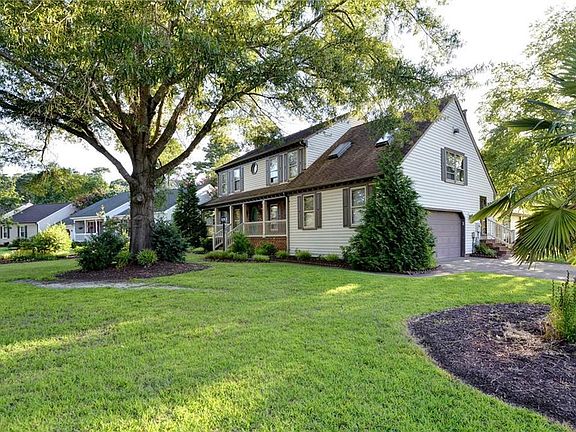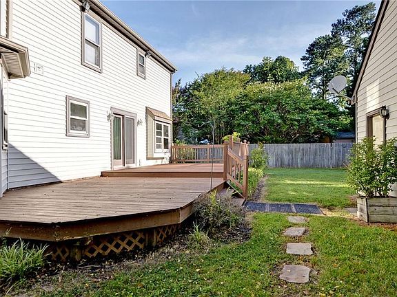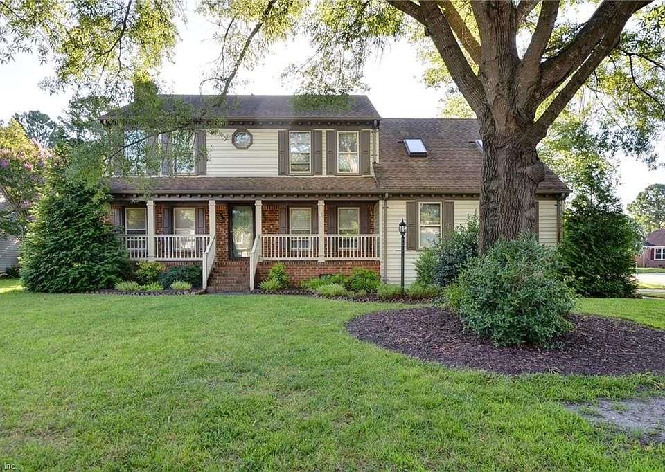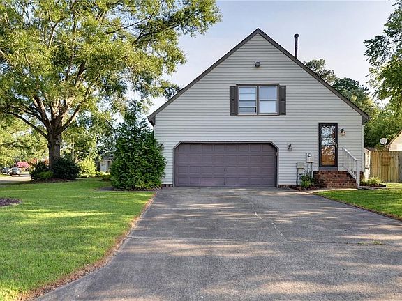 Gorgeous home in Las Gaviotas of Great Bridge! You'll love this quiet neighborhood, the home sits on a corner lot of a dead-end, cul-de-sac. The yard boasts mature trees and plenty of gardening space for those green-thumbs! Plus, a huge, private back deck to enjoy all summer long. Inside, you will be awed entering into the foyer that leads into a large, open living space with wall to wall flooring that's both beautiful and easy to maintain. Each room is accented with crown molding, including gorgeous dental molding in the dining room. The kitchen features ceramic flooring and Corian counters. Make use of the large FROG for home office or extra lounge space. The Primary Bedroom has TWO walk-in closets and the attached bathroom features a jetted tub and skylights! This property includes all the storage you may need between storage shed, an attached 2-car AND a detached 2-car garage - including built-in shelving and storage. Hot water heater is newer and yard has sump-pump.