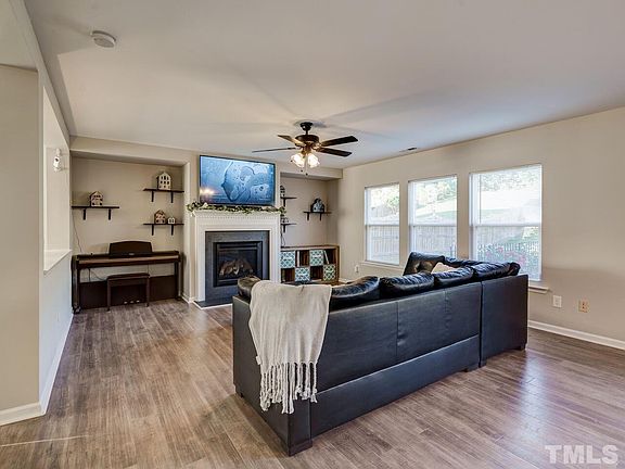 Like new home in Ravenstone. Brier Creek, RTP, & RDU just minutes away. Amazing new flooring throughout main level. Very open concept perfect for a busy family. Smooth ceilings throughout. Large kitchen with cabinets galore, center island, tile backsplash, and pantry. Updated roof. New HVAC. Huge master bedroom, separate tub & shower, large WIC. Ample secondary bedrooms. Sunny loft and playroom area. Fenced backyard. Patio. Neighborhood pool and playground. Be in your new home by Christmas!