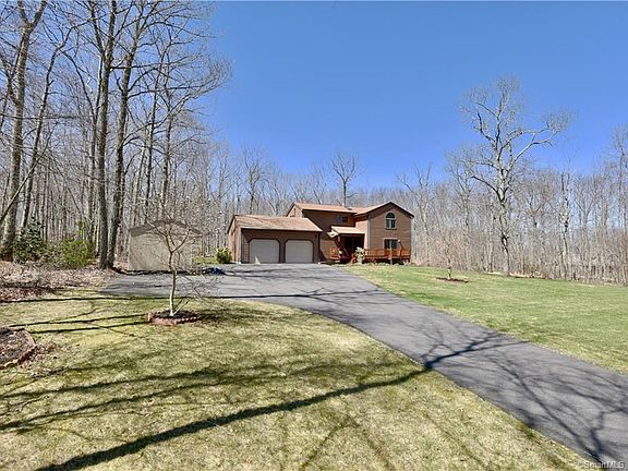If you are looking for privacy you must see this beautiful contemporary home nestled in the woods on 2.73 acres. Large kitchen with tile floor, double oven, center island and oak cabinets. Beautiful oak hardwood's throughout the entire home. Dining area has slider that leads out to a large deck that makes entertaining a breeze. Living room with vaulted ceiling, gas fireplace and sliders to a covered porch. Master bedroom on main level with full bath and slider to porch. The upper level features 2 large bedrooms and an updated full bath with jacuzzi tub and skylight. Other features include a rear covered porch, dual oil tanks in basement, central vac and security system. Large 2 car attached garage and a 10 X 16 shed to store all your outdoor equipment. Close to RT 6, the RI line and easy access to I 395.