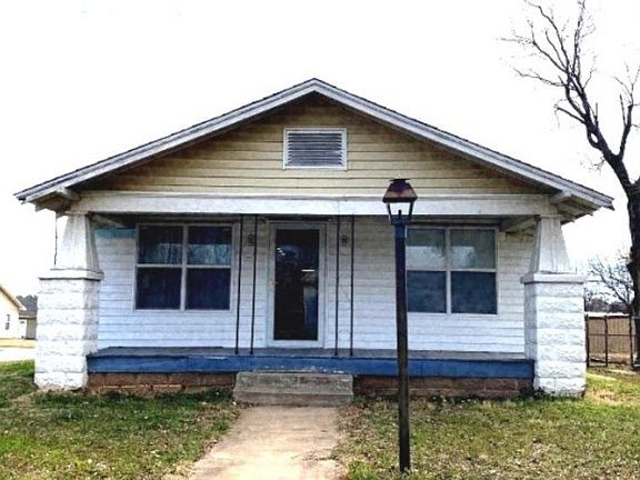 So much potential in this 2 bedroom, 1 1/2 bath bungalow home. What was once a duplex is now a home with lots of unique character and room to grow. The upstairs has a half bath and has room to make another bedroom. There is hardwood floors under the carpet to add to the original character of the home. There is a one are attached garage with alley access, a carport for additional parking and a storm shelter for inclement weather. Call today for your private tour.