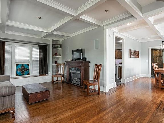 Old style charm meets modern convenience! Gorgeous hardwoods! Large, updated kitchen with Corian counters and slate floor. Huge living room with built-ins (don't miss the storage under the window seat), large dining room with even more storage! Each of the BRs are spacious, with the master having a bonus sitting room (originally a sleeping porch) with an extra closet. Extra-large 2-car detached garage. 2 covered porches. Roof 6 years old; HVAC, water heater and kitchen appliances all less than 5 years old.