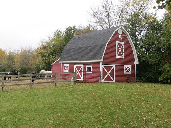 Pristine horse property located on 5 rolling acres in Bull Valley. Completely remodeled & gorgeous! Circular drive, stamped stone walk, prof. landscaping lead you to this amazing 5 BR, 3.5 bath home. Lrg bright rooms w/ beautiful views. Spacious upgraded kitchen, large front room w/ stone f.p. H.W. floors, 1st floor lux. master suite, in-gr pool, gazebo, 3 tier deck, fenced yard, 3 stable barn, adj. to riding trails.