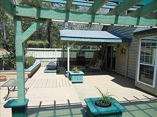 Relaxing hide-away is the perfect spot to come home to everyday. You will enjoy the open kitchen, tile floors, granite counters, stylish appliances, added cabinetry in dining area. Outdoor entertaining features multiple seating areas, with built in kitchen prep areas, covered porch, privacy fencing, fire pit, water feature and pergola. Master suite on the main level has access to rear patios. Guest bedroom on the main level too. Upstairs two more bedrooms each with an abundance of closets.