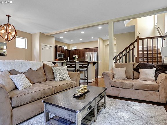 Better than new! This Riverside Home is move-in ready and backs green space. Fabulous private outdoor space features a fire pit & large patio for entertaining & raised beds for gardening. Great room floor plan with cook's kitchen. Granite counters, gas range & island seating. Spacious master suite has walk-in closet with organizers, soaking tub + shower. Third floor is 19x22 bonus room - perfect for home office, media or playroom. Includes all appliances.