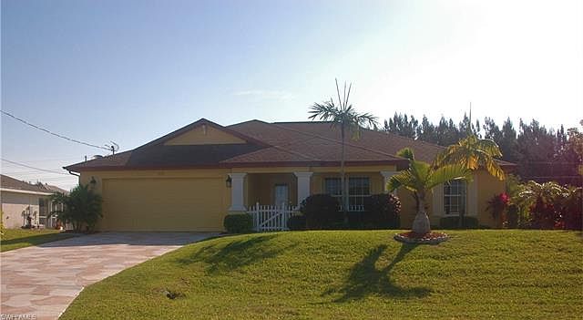 Amazing move in ready pool home is back available! Their loss is your gain! Recent updates include a beautiful new Kitchen with Granite, New Appliances, updated flooring, lighting, and updated baths with granite countertops. Great open Concept floor plan with 3 bedrooms plus den and lots of space for a large family gathering. Split bedrooms with large master, closet, and master bath with dual sinks, separate tub, and shower. Walk outside and it gets even better. Unwind on the large pavered lanai or take a dip in the newer Salt water and heated Pool. The beautiful surrounding landscape and Tropical palms add to this peaceful relaxing setting. Entire screened area has a concrete base so no worries about pavers sinking over time. Other extras include a reverse osmosis system in the kitchen, soft water system for the rest of the house, newer well pump, led lighting, updated irrigation system, front door glass insert, newer water heater, wired for security system, wired in smoke detectors, in wall bug control system and a fenced yard! Located in a highly sought after neighborhood close to Jim Jeffres Park, Publix, Christa McAuliffe Elementary School and the Pine Island Corridor.