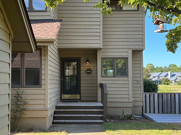 Private corner lot with gorgeous views nestled just beside the 18th tee box of Olde Point Country Club and close to the clubhouse, pool, and restaurant. The sun rises each morning right over the 18th fairway with unobstructed views out of the unit. Conditioned sunroom with incredible views, the favorite room in the house! Loft in upstairs can be easily converted into a third bedroom. Tremendous privacy being turned away from other units that face directly into the parking lot or road. Beautiful view of matured trees and the pond just outside of your windows. Unit is completely out of site from the main road and is nicely nestled to provide privacy while you enjoy the scenery. This is a dreamy location for anyone who loves nature and natural sunlight as the windows are large and surround much of the first floor! Unit has undergone many recent improvements and is to be sold as is. Homeowners are eligible to join the Harbor Village Yacht Club for social events and boat ramp access.